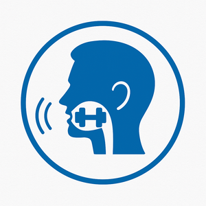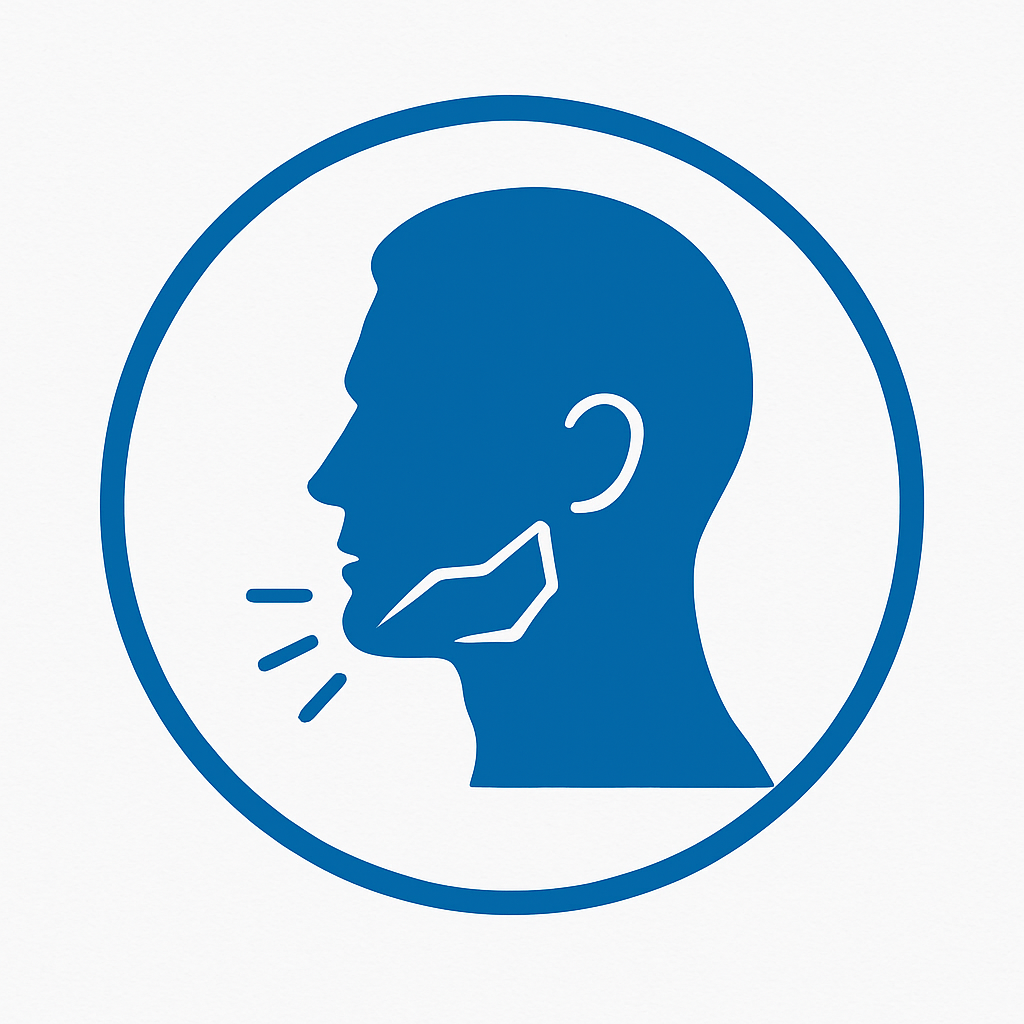 Sluit je mond en knijp je kaakspieren ritmisch aan (zoals kauwen), ongeveer 30–50 herhalingen per minuut. Houd je hoofd recht, schouders ontspannen.