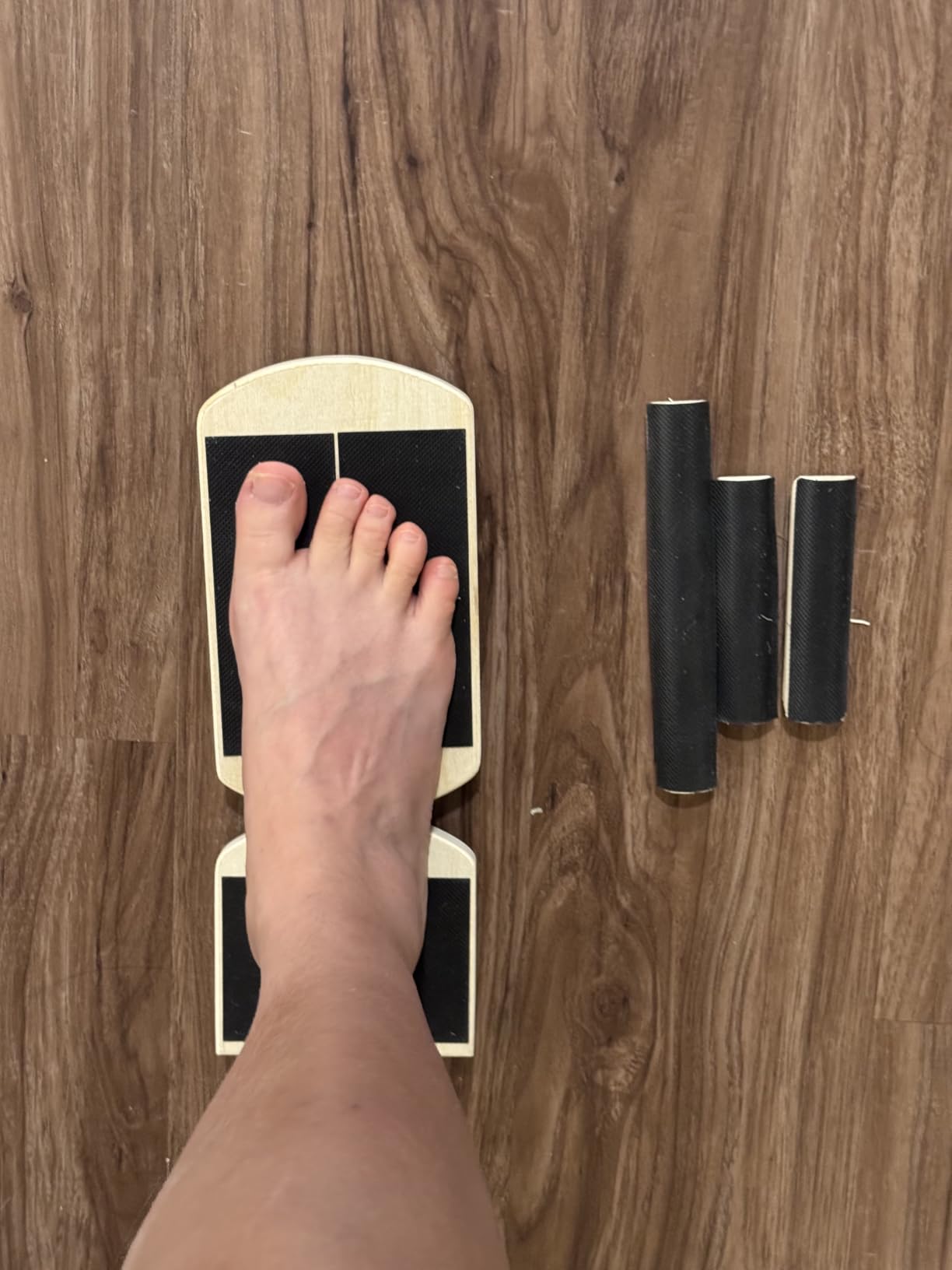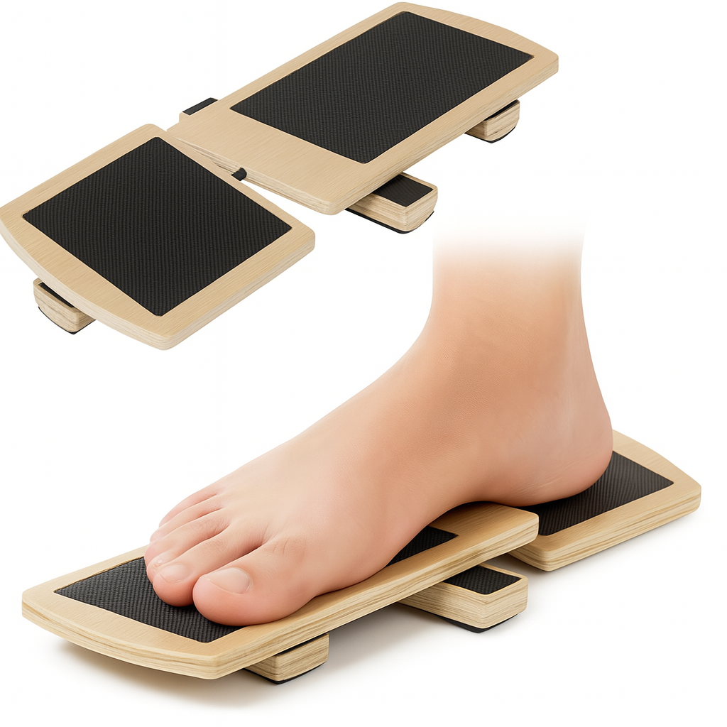 FlowStand is een minimalistisch balansplankje dat speciaal is ontworpen voor thuiswerkers en staand werken. Het bestaat uit twee aparte houten platforms met een antislip toplaag, die subtiel bewegen onder je voeten. De natuurlijke instabiliteit stimuleert microbeweging, waardoor je lichaam actief blijft zonder je focus te verliezen.